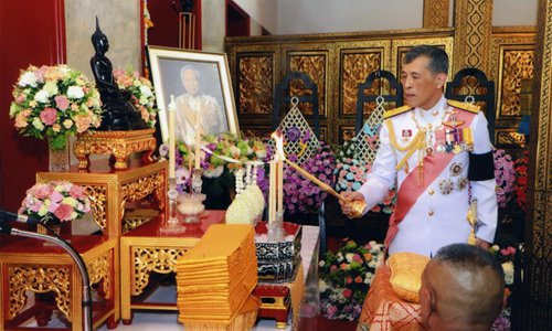 Thailand's King Maha Vajiralongkorn pays respect to former prime minister Prem Tinsulanonda, in Bangkok, Thailand, June 2, 2019. Thailand's former prime minister Prem Tinsulanonda died on May 26. King Maha Vajiralongkorn has ordered the Royal Palaces to mourn the death of Prem Tinsulanonda for 21 days. (Photo: Xinhua)