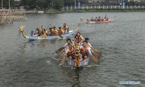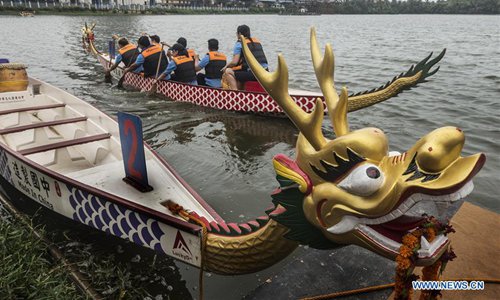 People participate in the Dragon Boat Festival in Kolkata, India, June 2, 2019. (Photo: Xinhua)