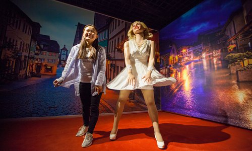 A woman poses for a photo next to a wax figure of US film icon Marilyn Monroe in her classic 'updraft' pose at a new wax figure museum in Hohhot, North China's Inner Mongolia Autonomous Region on Tuesday. Photo: IC