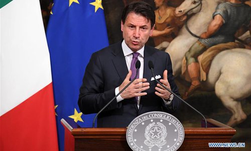 Italian Prime Minister Giuseppe Conte speaks during a press conference in Rome, Italy, June 3, 2019. Giuseppe Conte on Monday warned the two ruling coalition parties to confirm their commitment to the government program, or he would be ready to remit his mandate. (Photo: Xinhua)