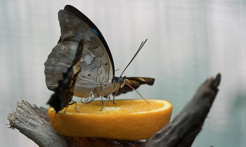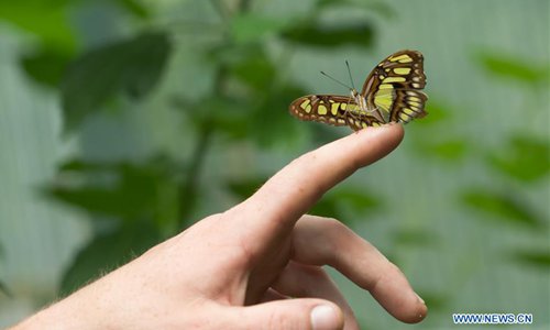 A butterfly is seen in the Butterfly Garden at Zoo Budapest in Budapest, Hungary, on June 6, 2019. Zoo Budapest opened it's Butterfly Garden for the current season with about 21 species of tropic butterflies. (Xinhua/Attila Volgyi)