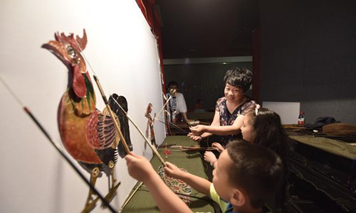 Children experience shadow puppets performance on the Cultural and Natural Heritage Day at a museum in Houma City, north China's Shanxi Province, June 8, 2019. More than 3,200 activities have been staged across China to celebrate this year's Cultural and Natural Heritage Day, which falls on the second Saturday of every June. (Xinhua/Qiao Jinchun)