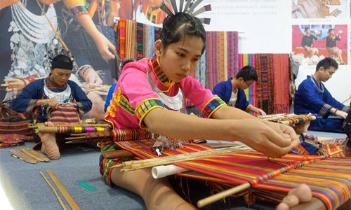 People display weaving of Li ethnic group on the Cultural and Natural Heritage Day at an exhibition center in Guangzhou, capital of south China's Guangdong Province, June 8, 2019. More than 3,200 activities have been staged across China to celebrate this year's Cultural and Natural Heritage Day, which falls on the second Saturday of every June. (Xinhua/Xu Jianmei)