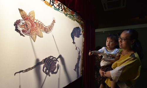 Visitors watch shadow play on the Cultural and Natural Heritage Day at a museum in Houma City, north China's Shanxi Province, June 8, 2019. More than 3,200 activities have been staged across China to celebrate this year's Cultural and Natural Heritage Day, which falls on the second Saturday of every June. (Xinhua/Qiao Jinchun)