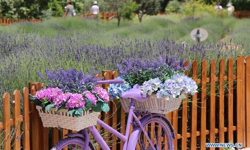 Visitors are seen at a garden during the Lavender Festival in Avgorou, Cyprus, June 8, 2019. The Lavender Festival takes place here from June 8 to 23. (Xinhua/Zhang Baoping)