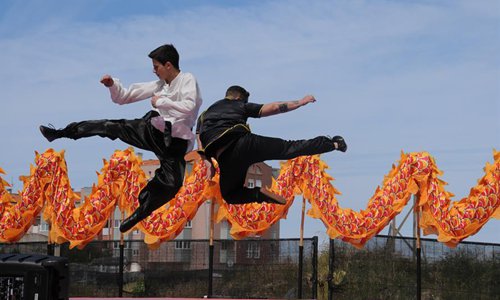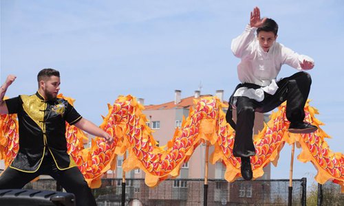 Students perform Chinese kung fu to celebrate the Chinese Dragon Boat Festival at the Confucius Institute of Aveiro University in Aveiro, Portugal, June 8, 2019. A series of activities were conducted on Saturday in Aveiro to celebrate the traditional Chinese festival. (Xinhua/Wen Xinnian)