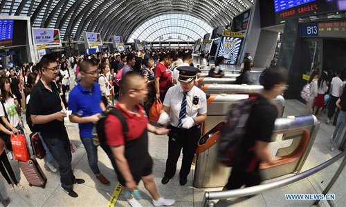 Passengers have their tickets checked at the Tianjin West Railway Station in north China's Tianjin, June 9, 2019. Sunday witnessed a travel rush as the Dragon Boat Festival holiday came to an end. (Photo: Xinhua)