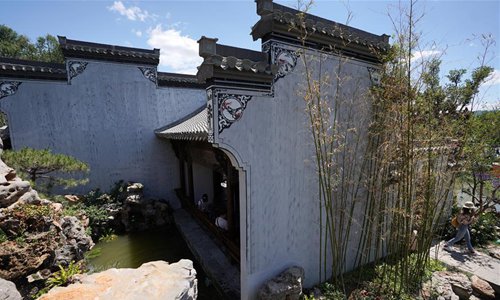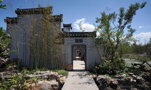 Tourists visit the Anhui Garden during the Beijing International Horticultural Exhibition in Yanqing District, Beijing, capital of China, June 9, 2019. Anhui Day theme event is held during the Beijing International Horticultural Exhibition from June 9 to 11. (Photo: Xinhua)