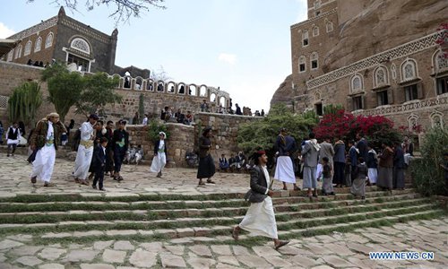 Yemenis visit historical sites at the Dar Al-Hajar (Rock Palace) during the holiday of Eid al-Fitr, northwest of Sanaa, Yemen, on June 9, 2019. (Photo: Xinhua)