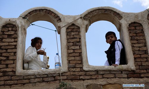 Yemeni children visit the Dar Al-Hajar (Rock Palace) during the holiday of Eid al-Fitr, northwest of Sanaa, Yemen, on June 9, 2019. (Photo: Xinhua)