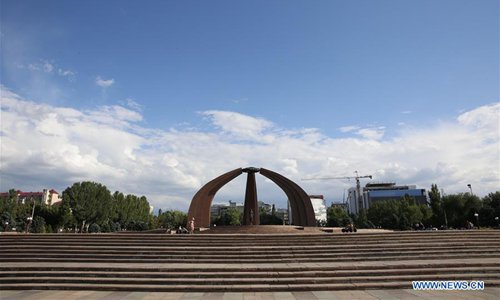 Photo taken on June 5, 2019 shows the view of Victory Square in Bishkek, capital of Kyrgyzstan. (Photo: Xinhua)