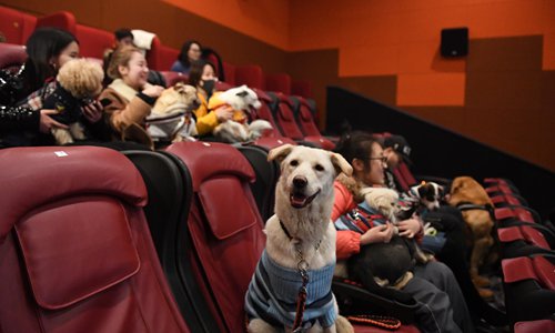 Dog owners bring their pets to a cinema in Hangzhou, East China's Zhejiang Province to celebrate the Year of the Dog in 2018. Photo: VCG