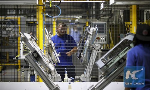 Employees work at the Fuyao Glass America (FGA) facility in Moraine of Dayton in Ohio, the United States, Aug. 21, 2018. (Photo: Xinhua)