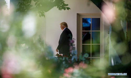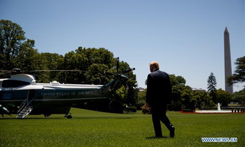 US President Donald Trump leaves the White House in Washington D.C., the United States, on June 11, 2019. US President Donald Trump said on Tuesday that he had received a "beautiful" letter from Kim Jong-un, top leader of the Democratic People's Republic of Korea (DPRK). (Photo: Xinhua)