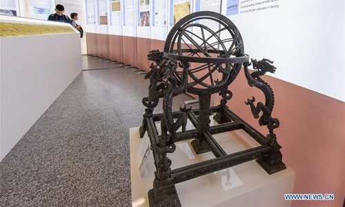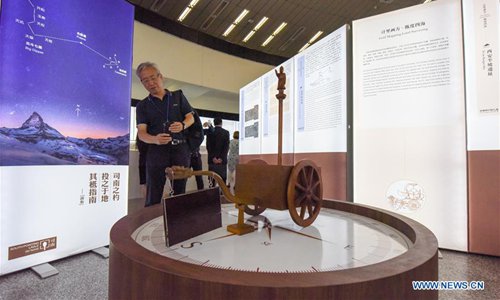 People visit the Chinese navigation exhibition "From Compass to BeiDou" in Vienna, Austria, on June 11, 2019. A Chinese navigation exhibition opens in Vienna International Center on Tuesday, showing how the nation evolves "from compass to BeiDou" - as the exhibition is themed - in time service, surveying, mapping and navigation technologies. (Photo: Xinhua)