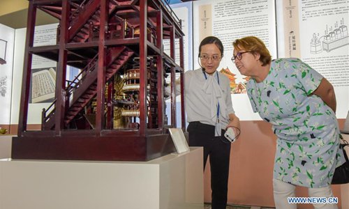 Simonetta Di Pippo (R), Director of the United Nations Office for Outer Space Affairs, visits the Chinese navigation exhibition "From Compass to BeiDou" in Vienna, Austria, on June 11, 2019. A Chinese navigation exhibition opens in Vienna International Center on Tuesday, showing how the nation evolves "from compass to BeiDou" - as the exhibition is themed - in time service, surveying, mapping and navigation technologies. (Photo: Xinhua)