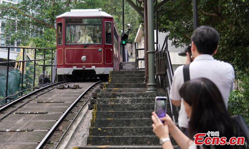 A view of Hong Kong's Peak Tram, one of the world's oldest and most famous funicular railways, April 22, 2019. A project to upgrade the tram will involve a significant investment of HK$684 million, replacing the current tram cars, which have a capacity of 120 passengers, with new 210-passenger tram cars. The first suspension of the Peak Tram service will begin on April 23 and last approximately two to three months. Photo: China News Service