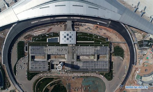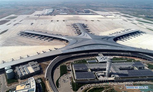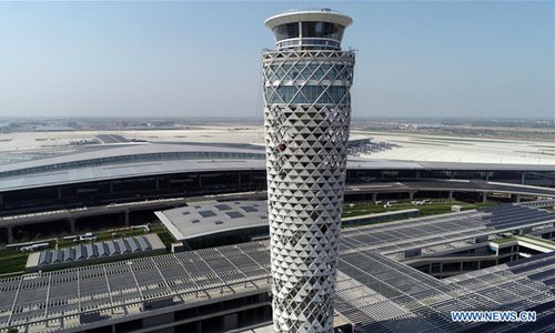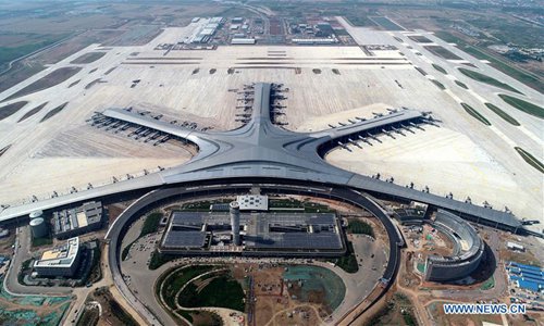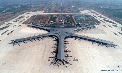 Aerial photo taken on June 12, 2019 shows the Qingdao Jiaodong International Airport under construction in Qingdao, east China's Shandong Province. (Photo: Xinhua)