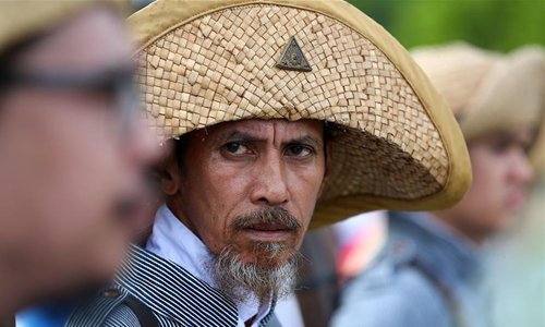 A man in a soldier uniform of the 19th century is seen in the celebration of the 121st Philippine Independence Day in Cavite Province, the Philippines, June 12, 2019. (Photo: Xinhua)