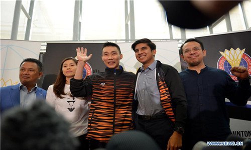 Malaysia's badminton player Lee Chong Wei (C) attends a news conference to announce his retirement in Putrajaya, Malaysia, June 13, 2019. (Xinhua/Chong Voon Chung)