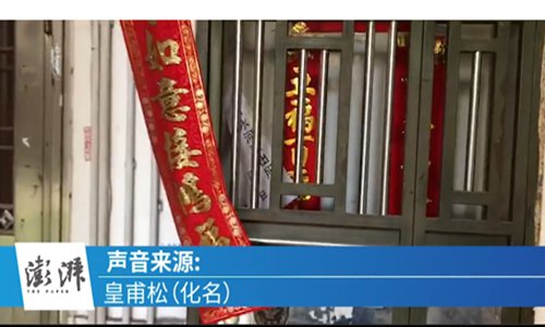 Local police has sealed the door of the house, where the freezer contained the three elderly people's bodies were discovered. Photo: Screenshot of video by The Paper