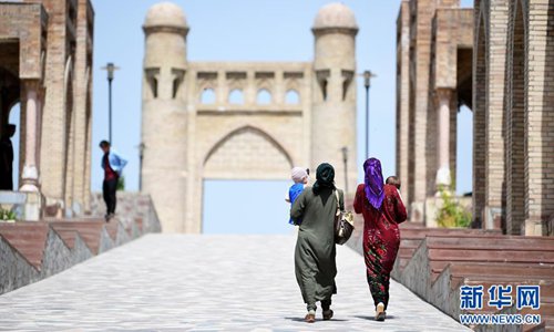 People visit the Hisor Fortress, west of Dushanbe, Tajikistan, on June 12, 2019. Photo: Xinhua
