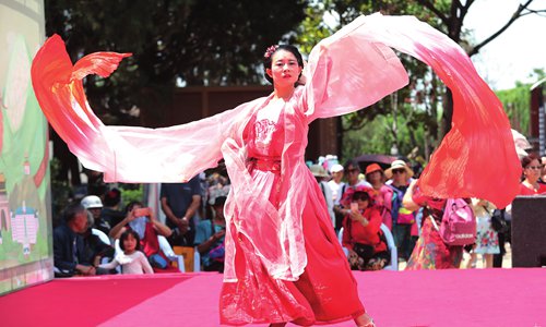 A dancer dressed in hanfu performs in Kunming, Southwest China's Yunnan Province. Photo: IC