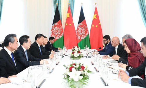 Chinese President Xi Jinping meets with Afghan President Mohammad Ashraf Ghani in Bishkek, Kyrgyzstan, June 13, 2019. (Xinhua/Xie Huanchi)