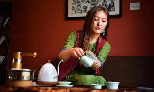 Takyrbasheva Asel, a student from Kyrgyzstan, performs tea art at a teahouse in Hainan University in Haikou, south China's Hainan Province, June 13, 2019. Kyrgyz girl Takyrbasheva Asel majors in Tourism Management in Hainan University. She has dedicated herself in experiencing the Chinese culture, including the learning of traditional Chinese musical instruments, Taiji and martial arts, and tea art since she came to China three years ago. She hoped she could stay in China after graducation and invite people from her hometown to come and experience the Chinese culture. Statistics showed that over 4,600 Kyrgyz students studied in China in 2018. (Xinhua/Guo Cheng)
