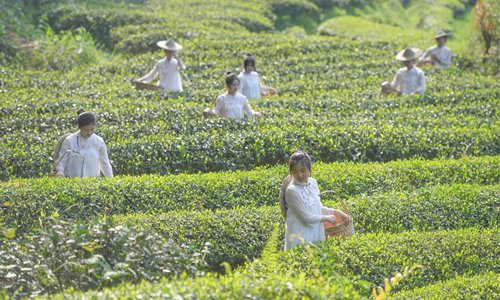 Students learn to pick tea leaves in Tianxin Village in Wuyishan City, southeast China's Fujian Province, April 9, 2019. Located on the southeastern coast of China, Fujian Province is lying between mountains and the sea. Acting on the understanding that lucid waters and lush mountains are invaluable assets, Fujian in recent years has achieved great successes in terms of ecological development. The province has ranked China's No. 1 for 40 years with a forest coverage rate passing 67 percent. Besides high water quality, local residents also enjoy good air quality on over 95 percent of days in main cities of Fujian. Benefiting from its natural environment, Fujian keeps pioneering sustainable economy, mechanism invigoration, sound livability and good life. On June 13-15, the Beijing International Horticultural Exhibition exposes visitors to Fujian's sound livability and natural beauties with a Fujian Day theme event. (Xinhua/Song Weiwei)
