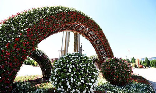 A decorating parterre to greet the fifth summit of the Conference on Interaction and Confidence Building Measures in Asia (CICA) is seen in Tajikistan's capital Dushanbe, June 13, 2019. (Xinhua/Sadat)