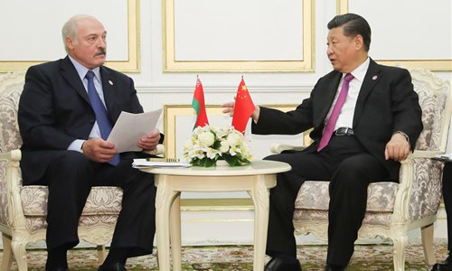 Chinese President Xi Jinping met with Belarusian President Alexander Lukashenko in Bishkek on Friday, agreeing to promote cooperation in various fields including the