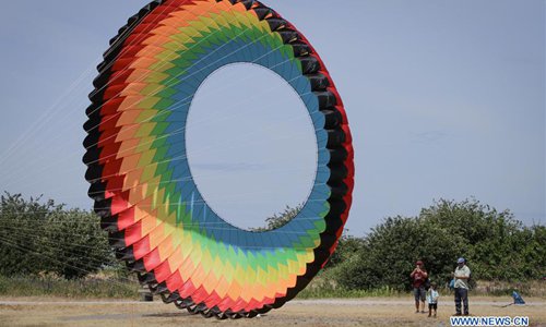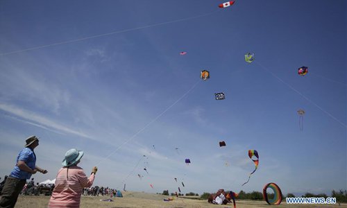 People fly kites during the 44th Pacific Rim Kite Festival at Garry Point Park in Richmond, Canada, June 16, 2019. The festival attracted thousands of kite-flying enthusiasts and professional kite flyers. (Photo: Xinhua)