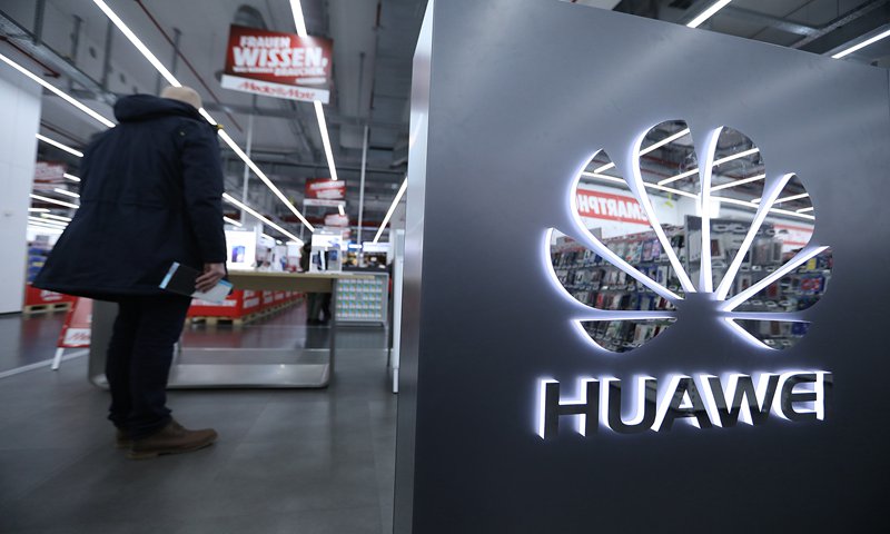 A Huawei Technologies Co logo sits on display inside an electronic goods store in Berlin on December 17. Photo: VCG