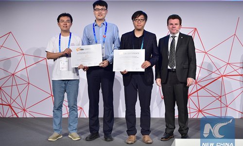 Representatives from China's Sunway TaihuLight supercomputer receive certificates at a semi-annual ranking of the Top500 supercomputers publishing session in Frankfurt, Germany, June 17, 2019. (Photo: Xinhua)