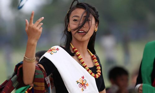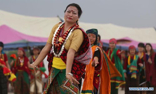 Women from Magar community perform a folk dance during Bhumya festival in Kathmandu, Nepal, June 17, 2019. People from Magar community from mid-western part of Nepal celebrated Bhumya festival to worship mother earth, wishing to keep their people, grains and livestock safe and sound from natural disaster. (Photo: Xinhua)