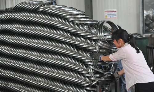A worker produces bicycle rims that will be exported to foreign markets in a plant in Tianmushan, East China's Zhejiang Province, in June 2018. Photo: IC
