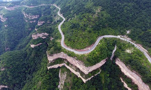 Aerial photo taken on June 18, 2019 shows Banshan Mountain in Wuxiang County of North China's Shanxi Province. (Photo: Xinhua)