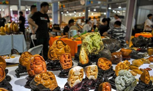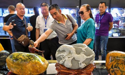 Photo taken on June 18, 2019 shows the 12th Xinjiang Ornamental Stone Show and the Hetian Jade Selected Expo in Urumqi, Northwest China's Xinjiang Uygur Autonomous Region. The fair attracted more than 660 exhibitors from home and abroad and included the exhibition, sale and appraisal of various ornamental stones. (Photo: China News Service/Liu Xin)
