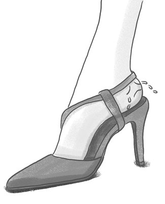 A: Yeah. These new shoes really don't fit. I got a blister on my heel.