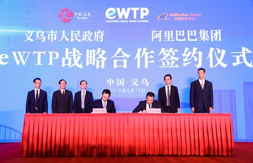 On Wednesday evening, the city of Yiwu signed an Electronic World Trade Platform (eWTP) strategic cooperation agreement with Alibaba to speed up Yiwu trading industries' digital transformation.