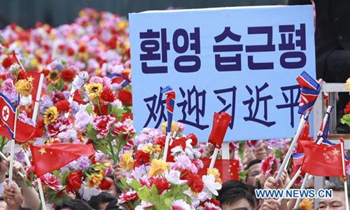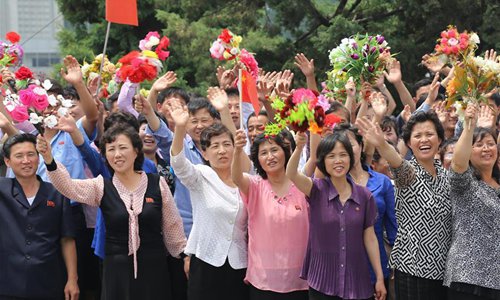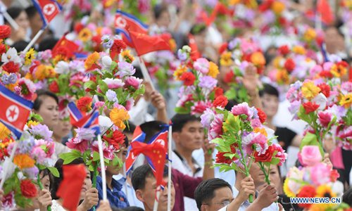 People welcome General Secretary of the Central Committee of the Communist Party of China and Chinese President Xi Jinping on the street in Pyongyang, capital of the Democratic People's Republic of Korea (DPRK), June 20, 2019. Xi arrived here Thursday for a state visit to the DPRK. (Xinhua/Jiang Yaping)