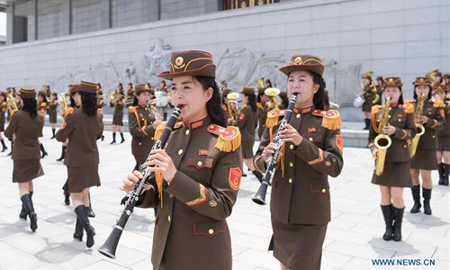 A military band prepares to welcome General Secretary of the Central Committee of the Communist Party of China and Chinese President Xi Jinping at the square of the Kumsusan Palace of the Sun in Pyongyang, capital of the Democratic People's Republic of Korea (DPRK), June 20, 2019. Xi arrived here Thursday for a state visit to the DPRK. (Xinhua/Shen Hong)