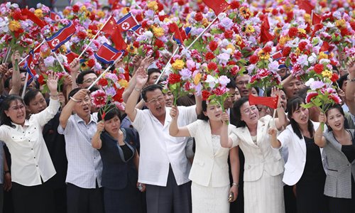 People welcome General Secretary of the Central Committee of the Communist Party of China and Chinese President Xi Jinping at the square of the Kumsusan Palace of the Sun in Pyongyang, capital of the Democratic People's Republic of Korea (DPRK), June 20, 2019. Xi arrived here Thursday for a state visit to the DPRK. (Xinhua/Shen Hong)
