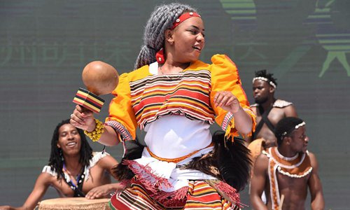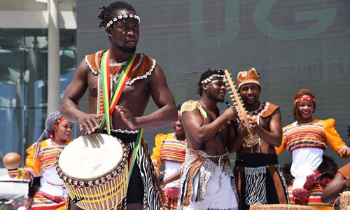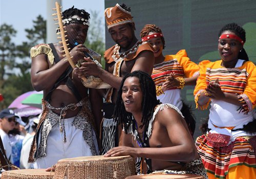 Artists perform at the Beijing International Horticultural Exhibition in Yanqing District of Beijing, capital of China, June 22, 2019. The expo kicked off its "Uganda National Day" event on Saturday. (Xinhua/Ren Chao)