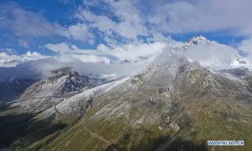 Aerial photo taken on June 22, 2019 shows a scenery of the Laybulak pasture after snow in Taxkorgan Tajik Autonomous County of northwest China's Xinjiang Uygur Autonomous Region. The Laybulak pasture lies in the heartland of the Pamir Plateau in northwest China at around 3,700 meters above sea level. Its bountiful water resources and forage grasses make it an ideal summer pasture for the nomads nearby. (Xinhua/Hu Huhu)