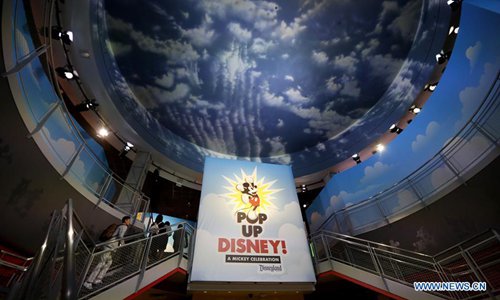 People visit the Pop-Up Disney! A Mickey Celebration at Disneyland Resort in Anaheim, California, the United States, June 20, 2019. The exhibition featuring Mickey and Minnie-themed rooms celebrates 90 years of Mickey Mouse. (Xinhua/Li Ying)