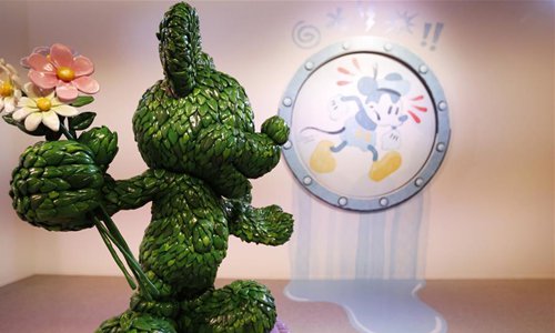 A statue of Mickey Mouse is seen at the Pop-Up Disney! A Mickey Celebration at Disneyland Resort in Anaheim, California, the United States, June 20, 2019. The exhibition featuring Mickey and Minnie-themed rooms celebrates 90 years of Mickey Mouse. (Xinhua/Li Ying)