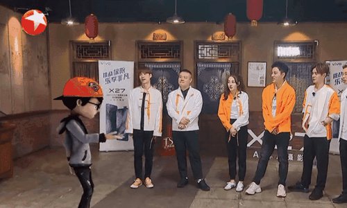 A cartoon character superimposed on the screen during the Sunday broadcast of the popular reality show Go Fighting, is seen wearing a hat, glasses and grey jacket and pants. Many speculate the cartoon replaced Zhang Yunlei's onscreen role because he joked about the Wenquan earthquake. Photo: Screenshot of the reality show Go Fighting