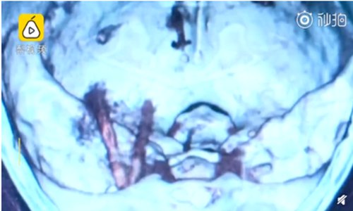 Fortunately, it hadn't damaged any blood vessels but some pieces had come within five millimeters of touching his brainstem. Doctors said Zhou was lucky to have cheated death.